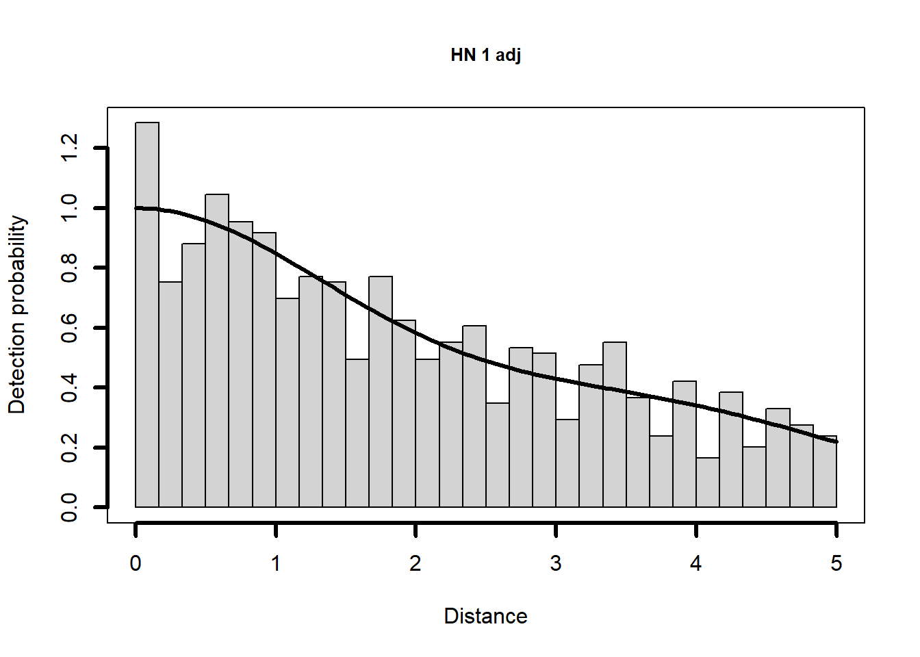 hncos <- ds(bino, key="hn", adj="cos")Starting AIC adjustment term selection.