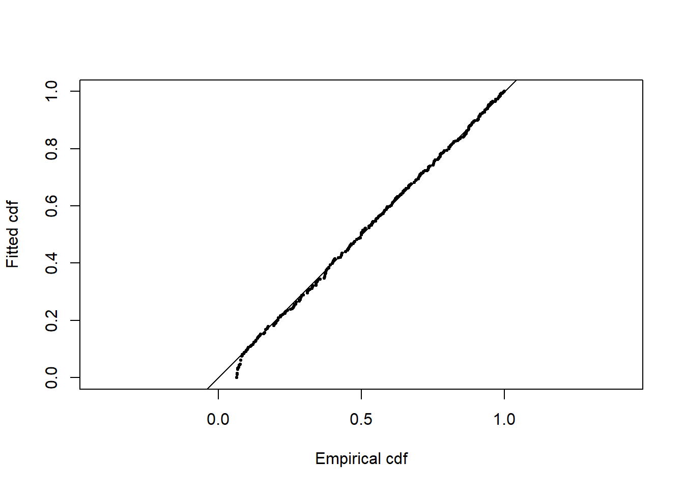 All models adequately fit the data as shown by the Cramer von Mises P-values. It is a close contest between models for smallest AIC score, with the smallest (by a fraction) going to the hazard rate model.